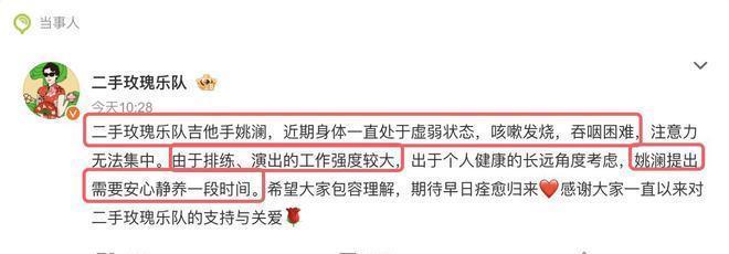 然则没念念到突生变化,二手玫瑰发文知道吉他手姚澜因为体格原因,再加上排演、献艺的使命强度较大,是以将疗养一段时辰。而网友们则对此解读,二手玫瑰可能会缺席第二期。也有网友知道,可能第二期被淘汰的是二手玫瑰,而目下发文称吉他手退出录制,即是给淘汰找情理。让全球合计是因为团队成员退出,找了其他吉他手加入,导致施展不睬念念,而不是因为实力问题被淘汰。