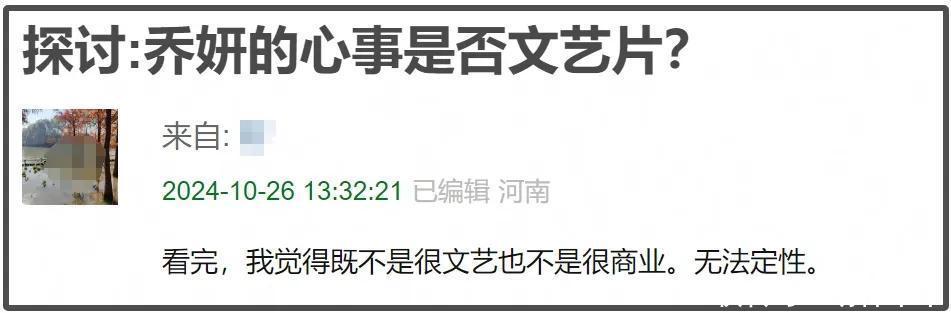在避让了国庆和元旦两大热点档期的十月末,赵丽颖和辛芷蕾主演的影片《乔妍的苦衷》上映了。冷档上映,再加上主演在电影圈声量不及、票房敕令力欠安,导致影片的票房收货不错料到的不睬想。在这么的情况下,该片的口碑就成为了各人存眷的焦点。