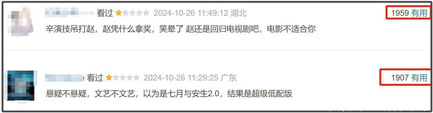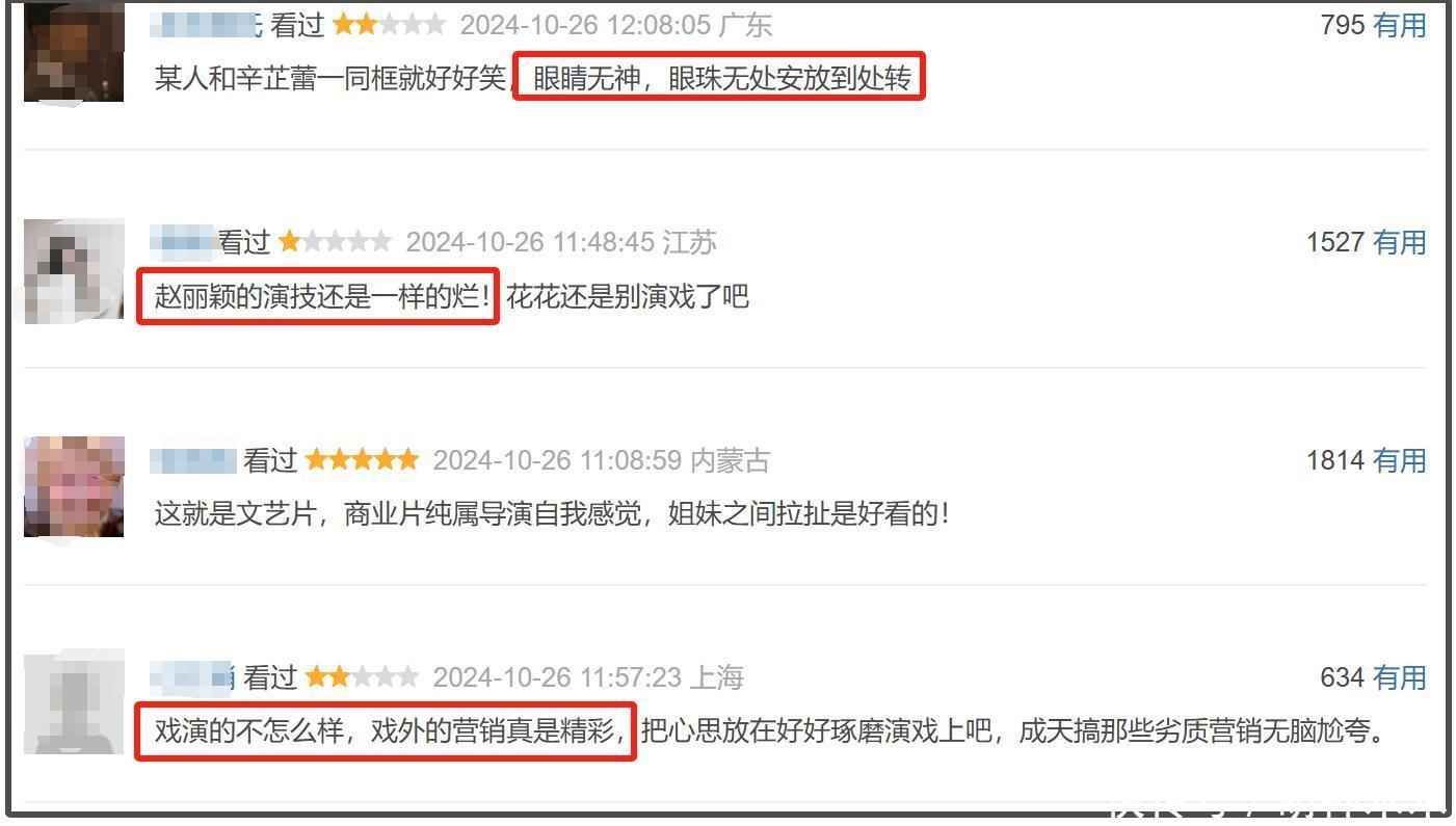 而针对赵丽颖在影片中的扮演,不雅众给出的反映亦然挑剔不一,有的东谈主以为她在影片中的扮演抽象有张力,撑起了乔妍这个变装,也撑起了世俗的剧情。关联词同期,也有不雅众反映说赵丽颖在其中的扮演并不经心,评价其再现“古偶演技”,而这亦然影片当今采集差评选较多的所在。